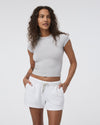 Specially designed with 89% recycled fabric, this premium, insanely soft brushed jersey knit stretches as you move, and seamlessly mixes and matches across styles.